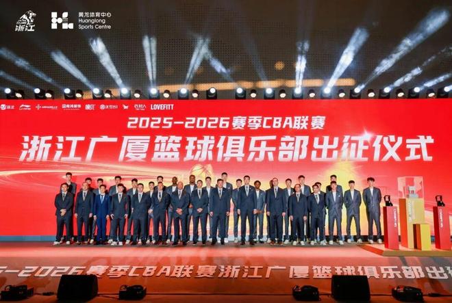 12月9日下午,2025-2026賽季浙江廣廈籃球俱樂部出征儀式在浙江省黃龍?bào)w育中心體育館舉行。浙江省體育局、浙江省競(jìng)賽中心、西湖區(qū)人民政府杭州之江國(guó)家旅游度假區(qū)管委會(huì)、杭州市體育局、西湖區(qū)文化和廣電旅游體育局、浙江省黃龍?bào)w育中心、浙江省籃球協(xié)會(huì)、杭州市西湖區(qū)靈隱街道等部門領(lǐng)導(dǎo),贊助商代表,各球迷匯代表共同出席,球隊(duì)全體將士集結(jié)完畢,為新賽季征程拉開序幕。