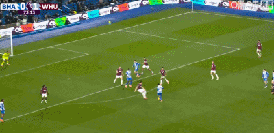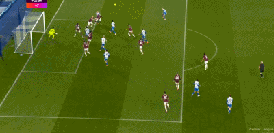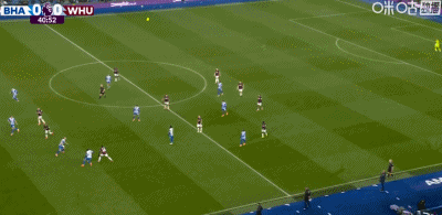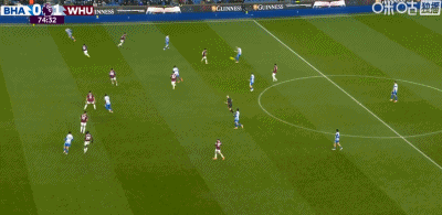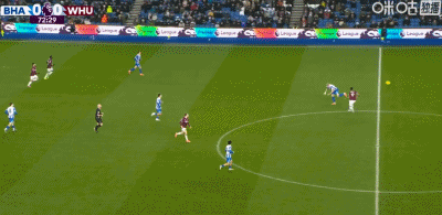 第73分鐘,鮑恩倒地情況下小角度破門,西漢姆聯(lián)1-0布萊頓