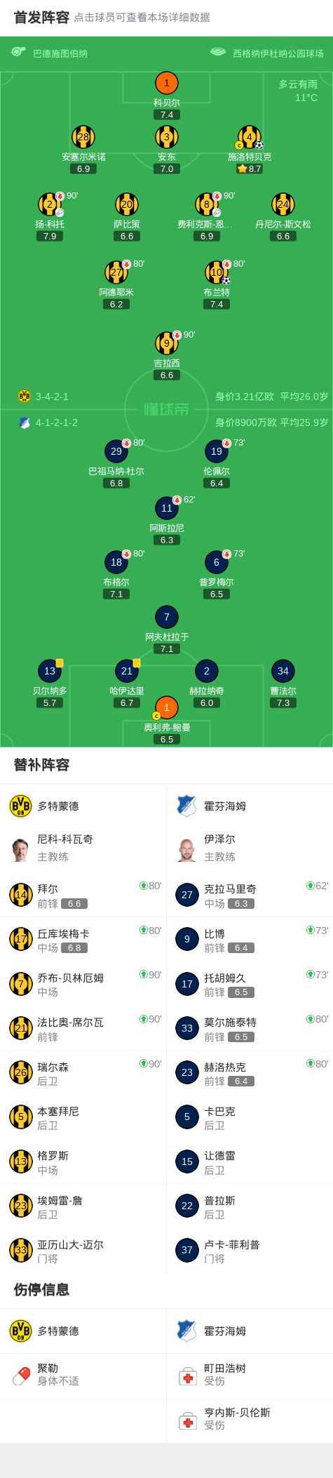 第60分鐘,恩梅加將球回做,施洛特貝克破門,多特2-0霍芬海姆