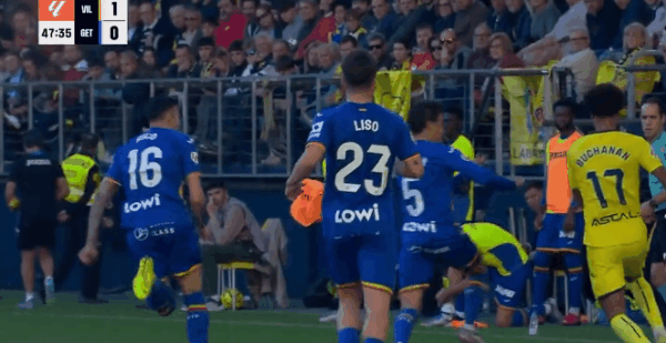 比賽中,當(dāng)值主裁判馬特奧-布斯克茨做出了一個令赫塔費(fèi)全員極其憤怒的判罰。