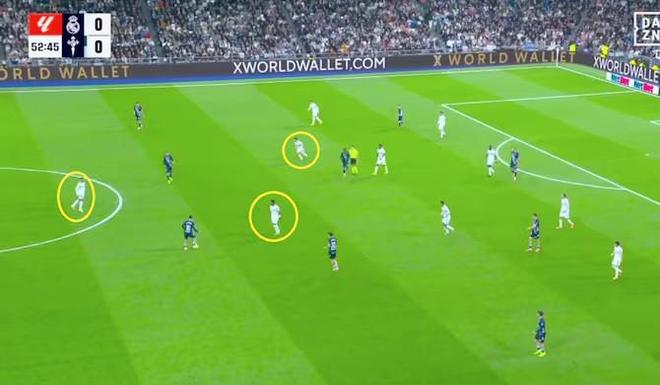 一切始于塞爾塔的一連串傳球,姆巴佩與維尼修斯放棄了防守責任,退出了這次防守。他們甚至沒有封鎖傳球線路,讓塞爾塔得以自由組織。兩人態(tài)度的松散也波及到居萊爾,使其無所適從。