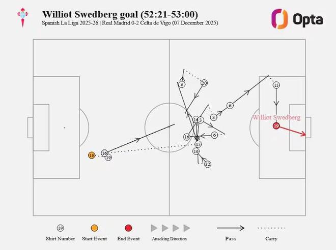 雖然進球者是斯韋德貝里,但塞爾塔幾乎任何球員都有機會完成這粒進球。楚阿梅尼放任明格薩進入禁區(qū),反應遲緩,體現(xiàn)了球隊在盯人上的疏忽。弗蘭-加西亞的表現(xiàn)幾乎更糟。
