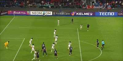 第33分鐘,一夫當(dāng)關(guān)的陳威,再次撲出對(duì)方兩腳威脅射門。